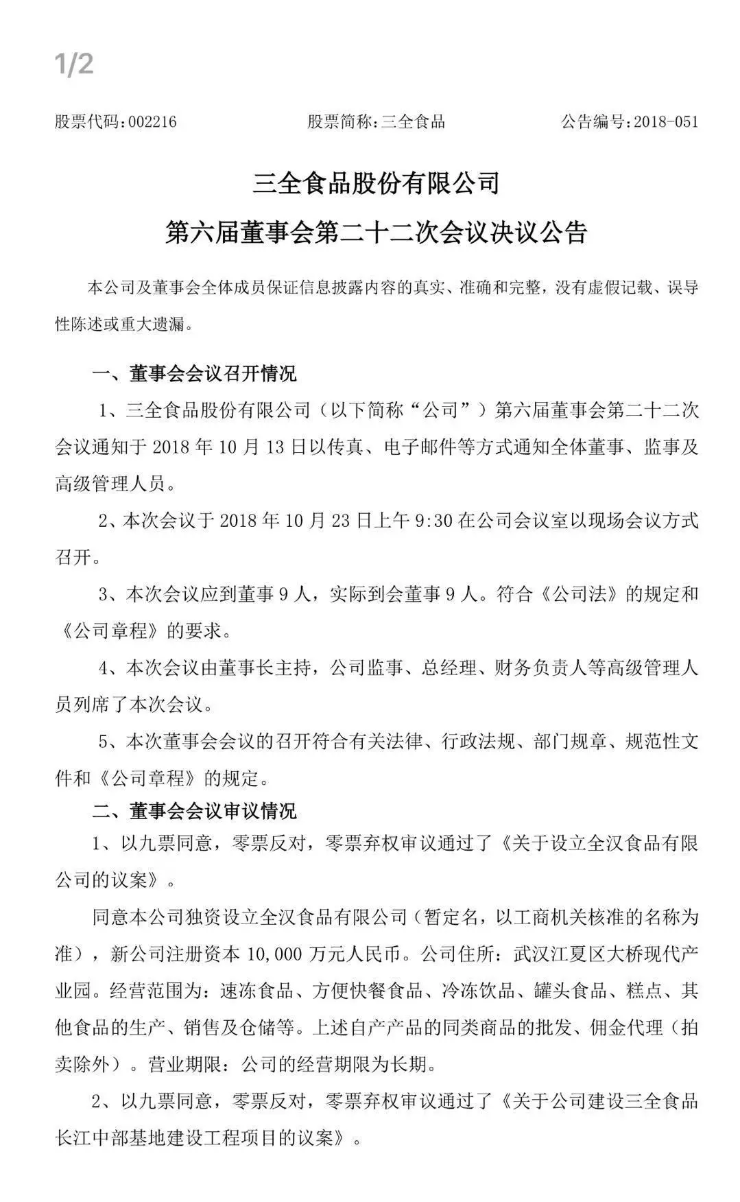 三全食品在公告中稱,此次對外投資符合公司長期發(fā)展戰(zhàn)略,若該項(xiàng)目實(shí)施,將會(huì)有效降低物流成本、采購成本。同時(shí),該基地將研發(fā)、生產(chǎn)適合當(dāng)?shù)厥袌鎏攸c(diǎn)的產(chǎn)品,進(jìn)一步提高公司產(chǎn)品在華中地區(qū)的市場份額,同時(shí)本項(xiàng)目實(shí)現(xiàn)了產(chǎn)地與銷售市場距離最小化,使項(xiàng)目生產(chǎn)的產(chǎn)品能夠在最短的時(shí)間內(nèi)投入市場,大大降低產(chǎn)品長途運(yùn)輸造成的損失和產(chǎn)品質(zhì)量的降低。