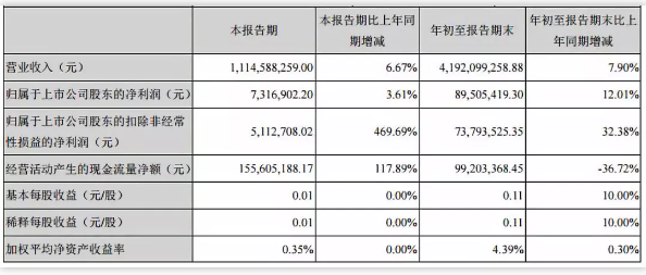 10月19日,三全食品發(fā)布三季度報告。