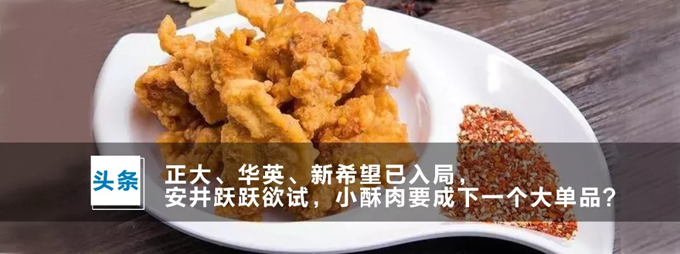 洛陽(yáng)正大食品將酥肉產(chǎn)品工業(yè)化,在確保菜品口味穩(wěn)定、工藝穩(wěn)定的前提下,也有效避免了小作坊式手工生產(chǎn)帶來的食品安全問題。與此同時(shí),華英、新希望六和等巨頭也入局了小酥肉市場(chǎng)。