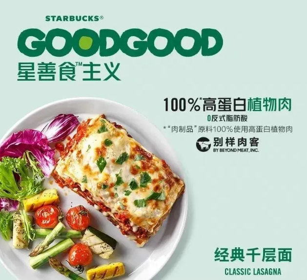 4月22日,星巴克以環(huán)保可持續(xù)為主題在全國門店上線了星善食系列美食,包括3款植物牛肉產(chǎn)品(別樣牛肉青醬意面、別樣牛肉美式酸辣醬大卷、經(jīng)典千層面),2款植物豬肉產(chǎn)品(新善肉越式風(fēng)味沙拉、新善肉蘑菇谷物碗),燕麥奶飲品系列以及咖啡渣再生隨行杯。其中植物豬肉的原料來自O(shè)mn!Pork,植物牛肉的原料來自BeyondMeat,燕麥奶的合作提供方是Oatly。