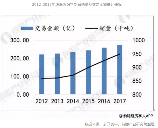 2012-2017年速凍火鍋料制品銷量及交易金額統(tǒng)計(jì)情況