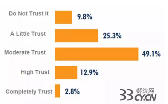 根據(jù)TrendSource近期基于美國(guó)便利店內(nèi)鮮食(炸雞、熱狗、Nachos)的調(diào)查,近一半(49.1%)的消費(fèi)者認(rèn)為對(duì)于店內(nèi)鮮食的安全性、食物質(zhì)量適度信任,僅有2.8%的消費(fèi)者完全信任其質(zhì)量,另外合計(jì)約35%的消費(fèi)者完全或基本不信任其質(zhì)量。