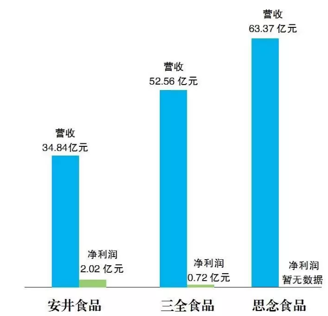 安井、三全、思念三家企業(yè)2017年年報營收對比圖: