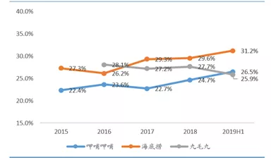 由于火鍋行業(yè)門(mén)檻低、可復(fù)制程度較高,翻臺(tái)率便成為衡量餐飲企業(yè)運(yùn)營(yíng)效率最重要的指標(biāo)。2016年-2018年,呷哺呷哺的翻臺(tái)率分別為3.4倍、3.3倍、2.8倍,一直處于下降趨勢(shì)。反觀(guān)海底撈,雖然門(mén)店數(shù)量也在快速擴(kuò)張,但其翻臺(tái)率卻一直保持在較高水平,2016年-2018年分別為4倍、5倍、5倍,不斷拉開(kāi)與呷哺呷哺、九毛九等競(jìng)爭(zhēng)對(duì)手的差距。