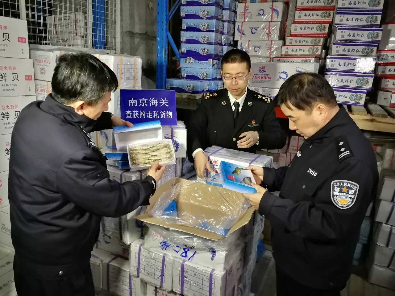 12月27日,海關總署統(tǒng)一指揮北京、南京、福州、南寧、昆明、石家莊、上海、青島、廣州、湛江、海口等11個海關,在地方公安、邊防、海警等部門的大力支持配合下,共同開展“4.12”打擊凍水產品走私集中行動,一舉搗毀涉案走私團伙8個,查證涉案凍水產品3.7萬噸,案值初估人民幣19億元。