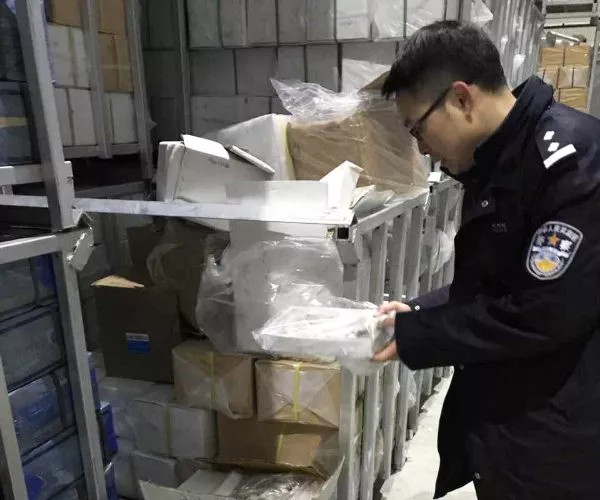 ▲北京海關緝私局現(xiàn)場查獲中性包裝、涉嫌走私進口的凍水產品(圖:北京海關)