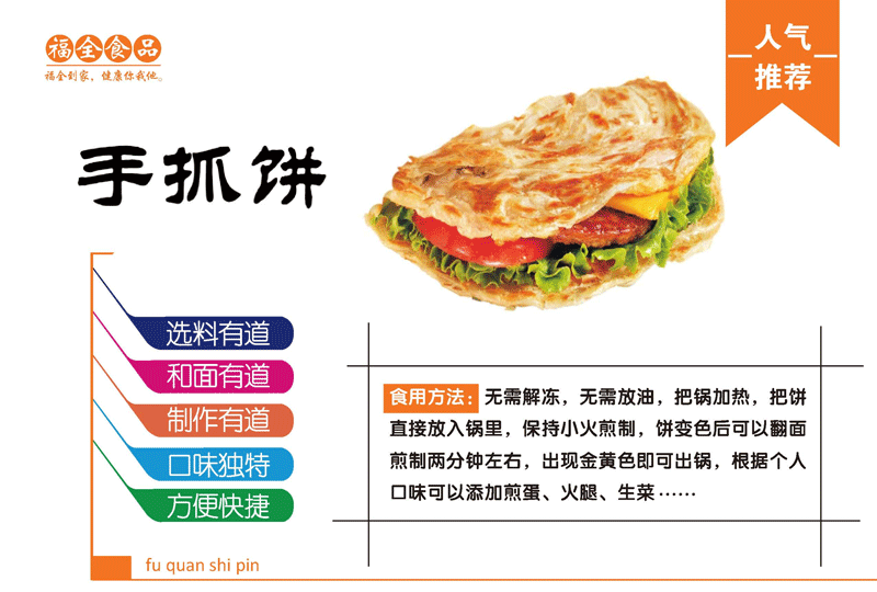 隨著人們收入的不斷增加,為滿足廣大居民提高生活質(zhì)量的要求,在2013年首家引進的臺灣風(fēng)味手抓餅生產(chǎn)線,向市場傾情推岀李福全手抓餅,填補河北省速凍餅的空白。手抓餅“外焦里嫩,手抓如絲,筋道可口,安全快捷”被譽為“健康食品”。